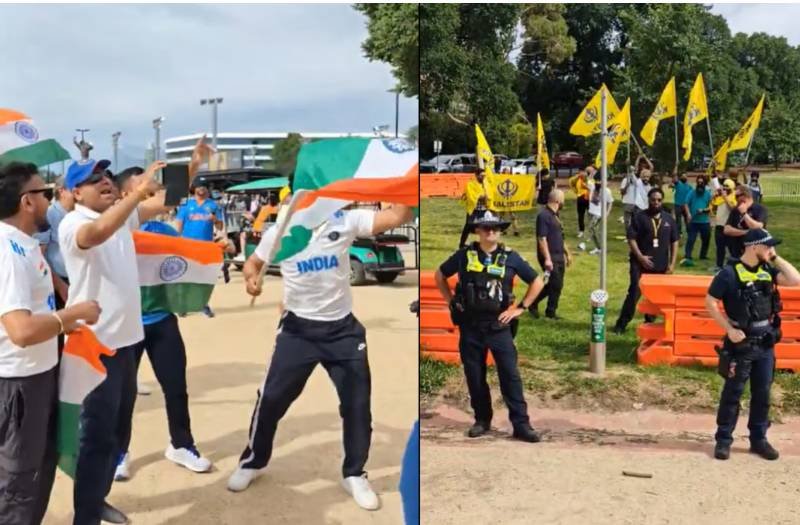 मेलबर्न क्रिकेट ग्राउंड के बाहर का एक वीडियो सोशल मीडिया पर सामने आया है जहां पर कुछ खालिस्तान समर्थकों को भारतीय तिरंगे का अपमान करते हुए देखा जा रहा है। तिरंगे का अपमान देखकर मैच देखने पहुंचे भारतीय फैंस भड़क जाते हैं। इसके बाद भारतीय फैंस तिरंगे को हाथ में लेकर खालिस्तानियों के खिलाफ नारेबाजी करने लगते हैं। वीडियो में देखा जा सकता है कि भारतीय फैंस ‘खालिस्तान मुर्दाबाद’ के नारे भी लगा रहे हैं। माहौल को ज्यादा बिगड़ता देख मेलबर्न पुलिस को हस्ताक्षर करना पड़ता है और नारेबाजी कर रहे लोगों को वहां से हटाते हैं।
