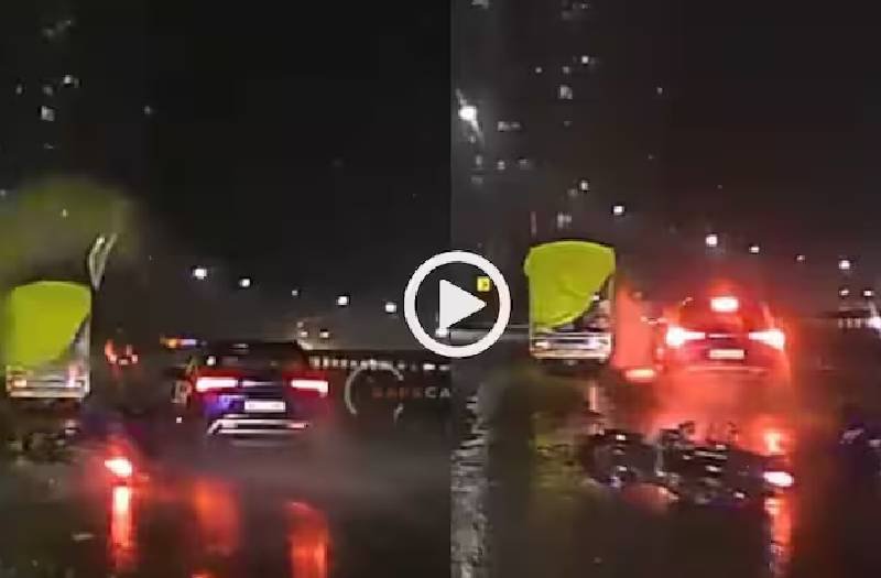 नवी मुंबई के हाईवे पर बाइक सवार युवक गड्ढे में गिरा, कार से कुचलने से बाल-बाल बचा। वायरल वीडियो ने सड़क सुरक्षा पर सवाल खड़े किए।