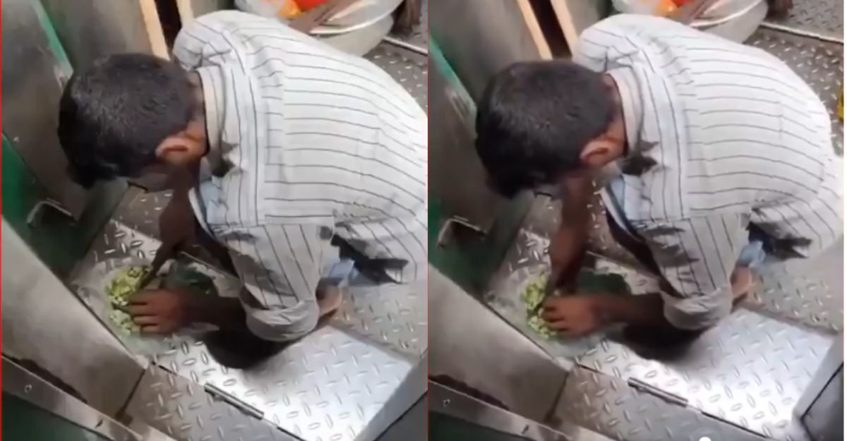 वायरल वीडियो में एक व्यक्ति ट्रेन के अंदर टॉयलेट के पास फर्श पर बैठा नजर आता है। वह वहीं सब्जियां काटते हुए दिखाई देता है, जो आगे चलकर झालमुड़ी या चना जैसे स्नैक्स बनाने में इस्तेमाल की जा सकती हैं। जिस जगह पर लोग खड़े होने से भी बचते हैं, वहां खाना तैयार होते देख लोग हैरान हैं। हालांकि वेंडर ने नीचे प्लास्टिक जरूर बिछाई हुई है, लेकिन आसपास का माहौल बेहद गंदा दिखाई दे रहा है। ऐसे माहौल में खाना बनाना या तैयार करना गंभीर स्वास्थ्य जोखिम पैदा कर सकता है।