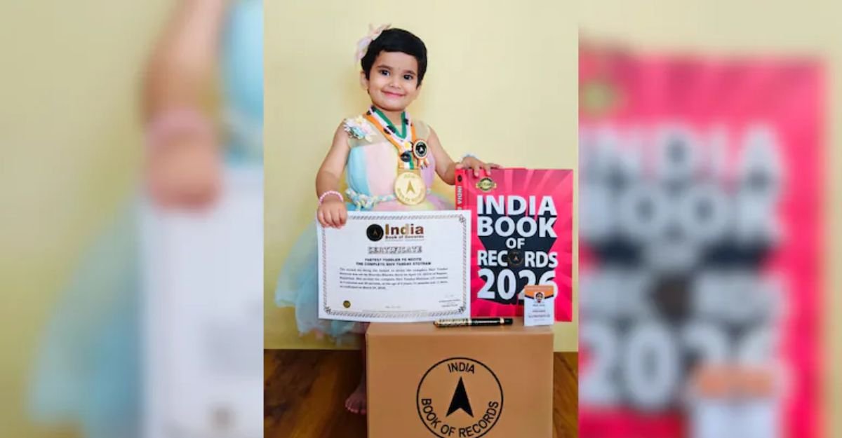 भाविका की इस अलौकिक प्रतिभा को अब आधिकारिक तौर पर दुनिया ने भी मान लिया है। 13 अप्रैल 2023 को जन्मी इस लाडली ने 24 मार्च 2026 को एक ऐसा कीर्तिमान स्थापित किया, जिसने उसे इंडिया बुक ऑफ रिकॉर्ड्स में जगह दिला दी। भाविका ने शिव तांडव स्तोत्र के 15 जटिल श्लोकों का पाठ मात्र 4 मिनट 20 सेकंड में पूरा कर दिखाया। जैसे ही रिकॉर्ड की घोषणा हुई, मकराना क्षेत्र सहित पूरे प्रदेश में जश्न का माहौल बन गया। लोग इसे साक्षात देवी का स्वरूप मान रहे हैं। तोतली आवाज में जब ‘जटाटवीगलज्जलप्रवाहपावितस्थले…’ जैसे मंत्र गूंजते हैं, तो सुनने वाला हर व्यक्ति मंत्रमुग्ध होकर ‘हर-हर महादेव’ जपने लगता है।