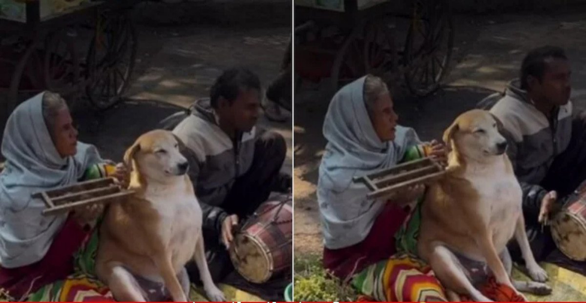 भजन के माहौल में पूरी तरह घुल-मिल गया देसी कुत्ता